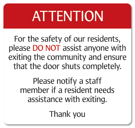 Custom sign information and spelling are the responsibility of client. ProMedica Senior Care can not be held liable for any errors entered by customer.