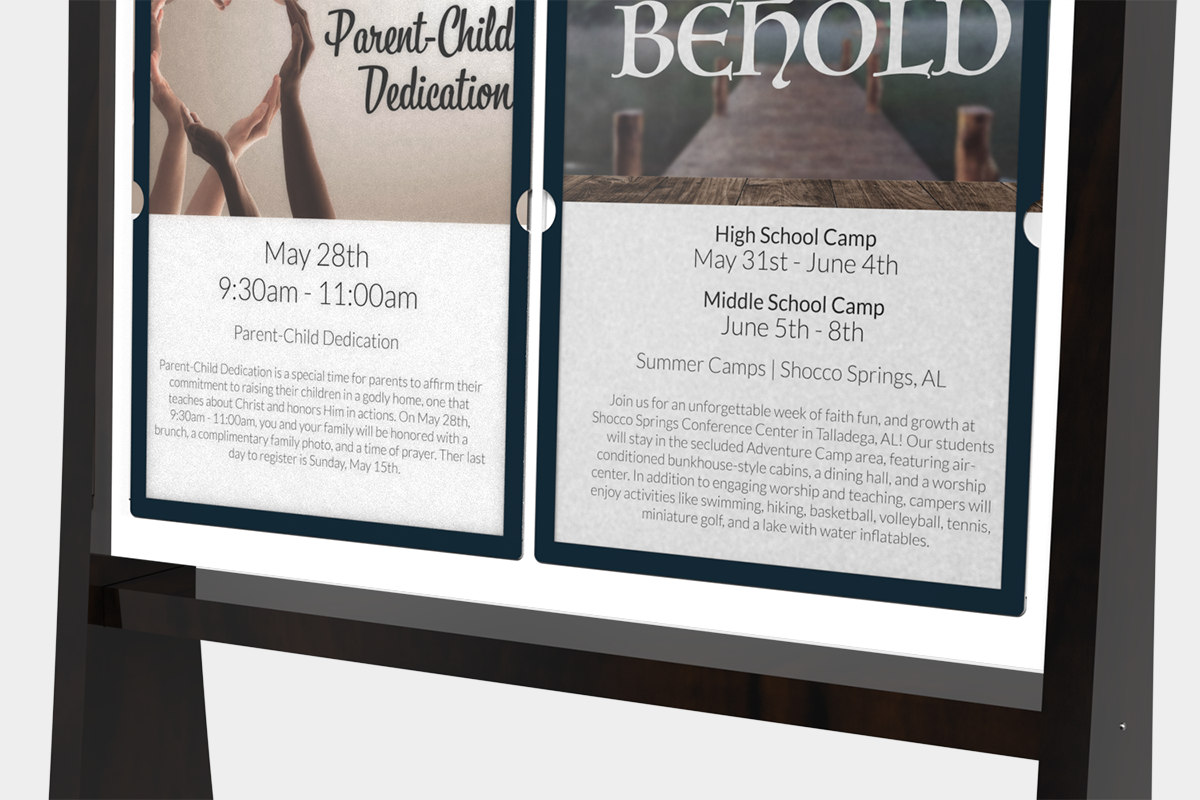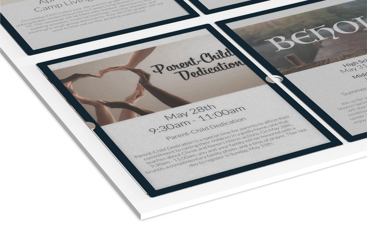 Message holders accommodate 8.5" x 11" paper for updating as often as you'd like.