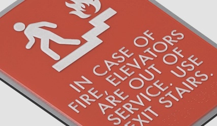 in case of fire, elevators are out of service... w/no braille