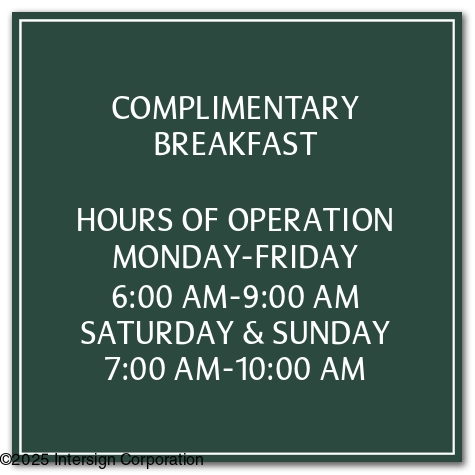 Suggested use: Complimentary Breakfast Hours, Restaurant Hours, etc