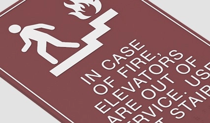 in case of fire, elevators are out of service... w/no braille