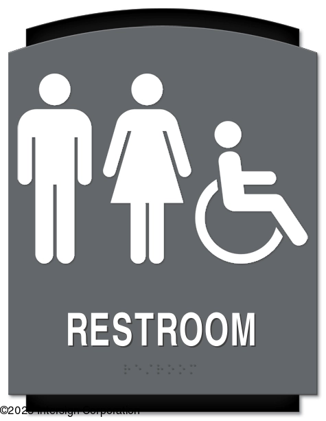 Standard male, female, and handicap symbols; use to identify a restroom for both males and females that is handicap accessible.