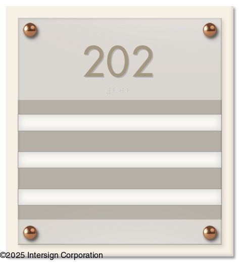 • Raised letters and Grade 2 Braille comply with the ADA.