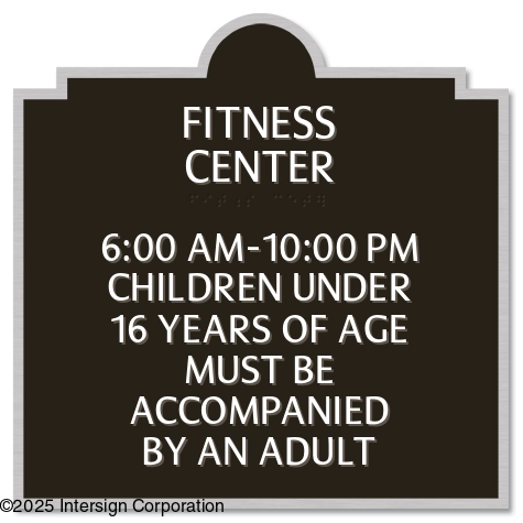 - Customize up to 8 lines of text. Suggested phrases: "Waiting Room," "Fitness Center," "Mechanical Room."