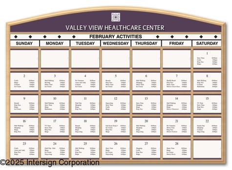 - Sign includes 35 individual insert windows for posting information for each day in an entire month.