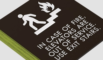 in case of fire, elevators are out of service... w/no braille