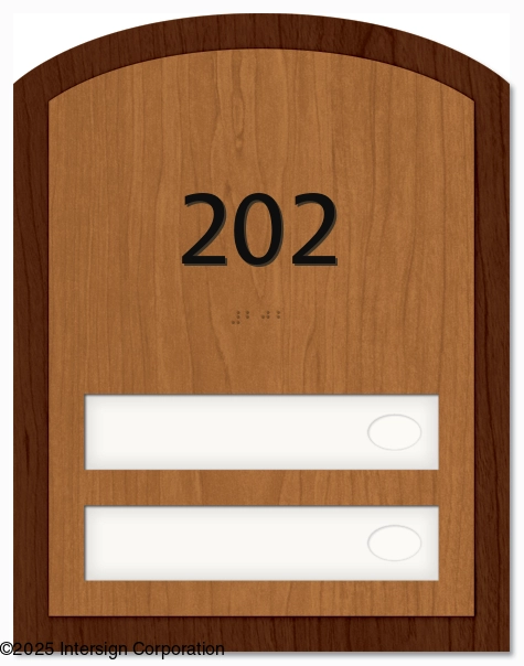 • 1" raised characters and Grade 2 Braille comply with the ADA.